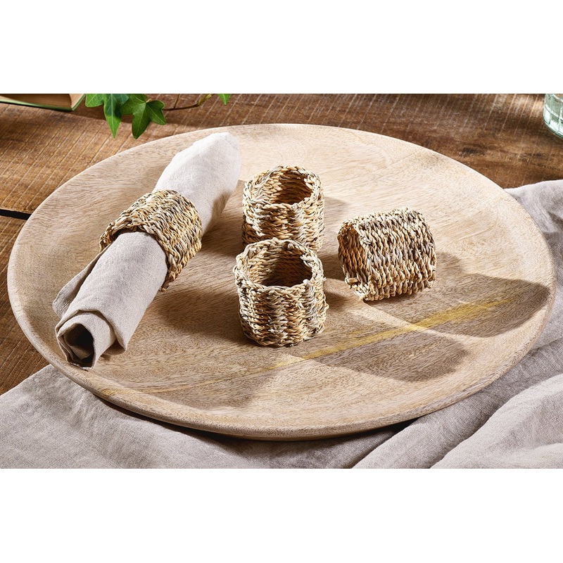These Aarushu seagrass napkin holders are handwoven from sustainably sourced seagrass. The woven pattern blends two tones of natural fibre, warm gold and soft grey. The Aarushu napkin holder has a thick band that securely holds a napkin in place. They brin