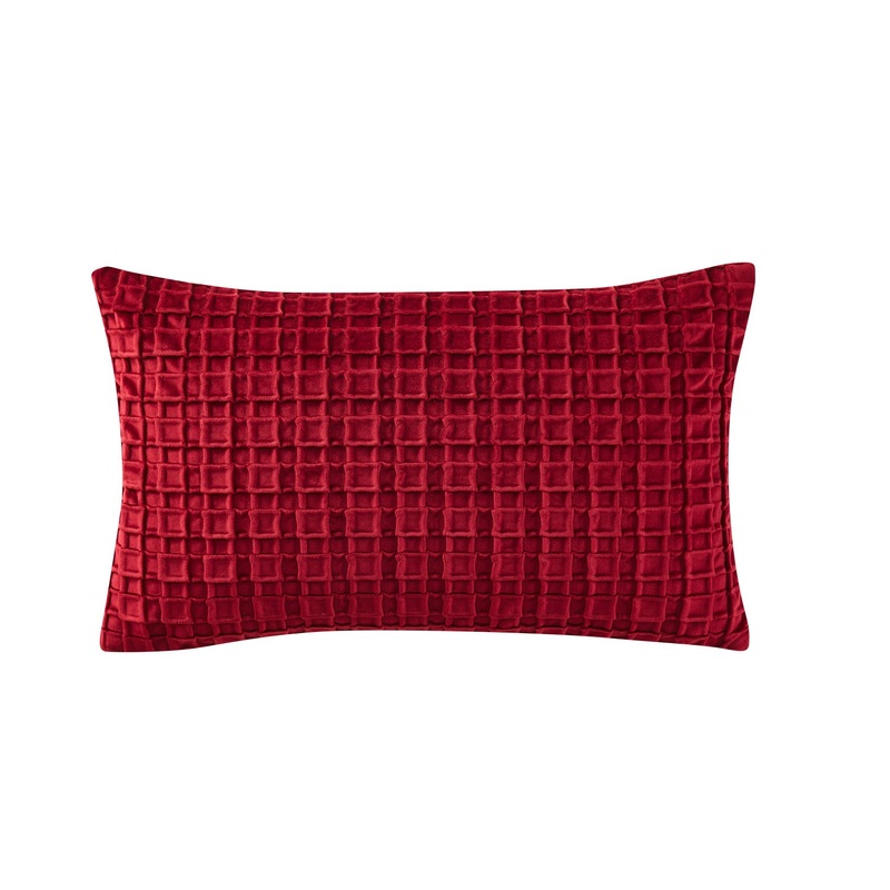 The Anya Pillow Throw pillow is ideal to cuddle up with during the holiday season. The accent pillow is made of luxuriously soft velvet with a waffle pleated texture. The pillow reverses to a plush solid velvet and is finished with a hidden zipper making it simple to clean. The 18 inch pillow or boudoir pillow is available in crimson red, snowy white, or evergreen color options (each sold separately).