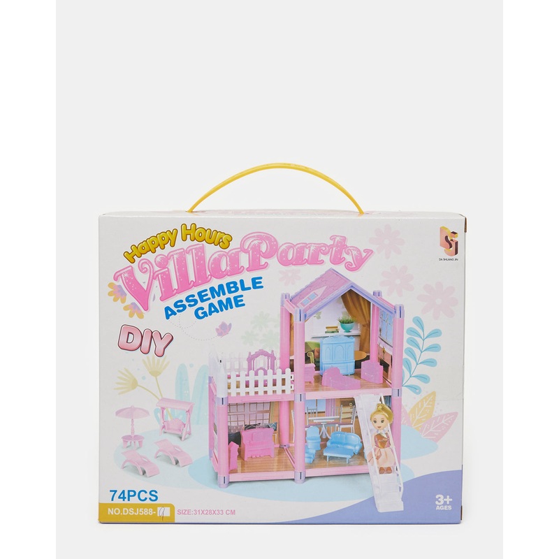 A delightful 74-piece DIY Villa Paradise toy featuring a stairway and detailed accessories. Perfect for children 3 years and older to build, create, and enjoy endless storytelling fun.Gender: Toys AccessoriesColour: AssortedPattern: PrintSuitable Age: 3+ Y