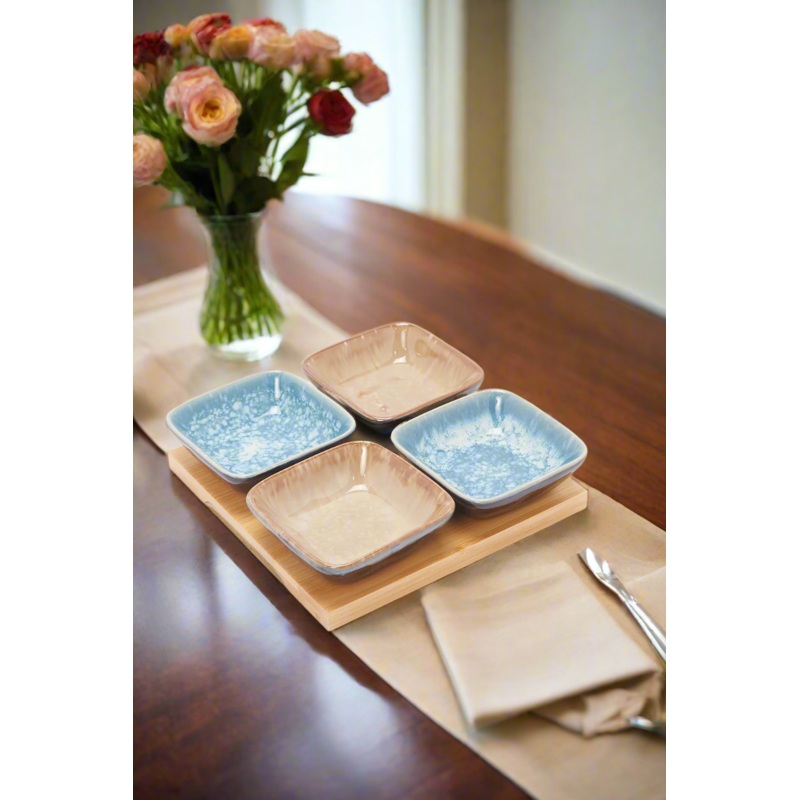 Assorted Square Serving Bowls With Bamboo Tray (5 Piece)