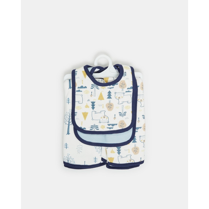 A practical set of 2 bibs and 2 burp cloths for newborns, made from soft and absorbent fabric for everyday use.Gender: Newborn AccessoriesColour: Blue/NavyPattern: PrintSet Includes: 2x Bib 2x Burp ClothSize: Burp Cloth: 53.5 X 25.4cm, Bib: 29cm x 19cmMate