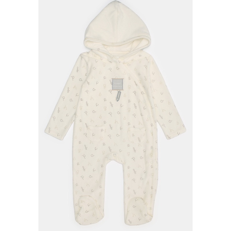 Feel cosy and enjoy maximum comfort throughout your little baby's wear. This printed sleepsuit features a hooded neck and long sleeves.Gender: Baby (0 to 12 Mths)Colour: CreamPattern: PrintedNeck: HoodedSleeve: Long SleeveLength: LongCare Instructions: Mac