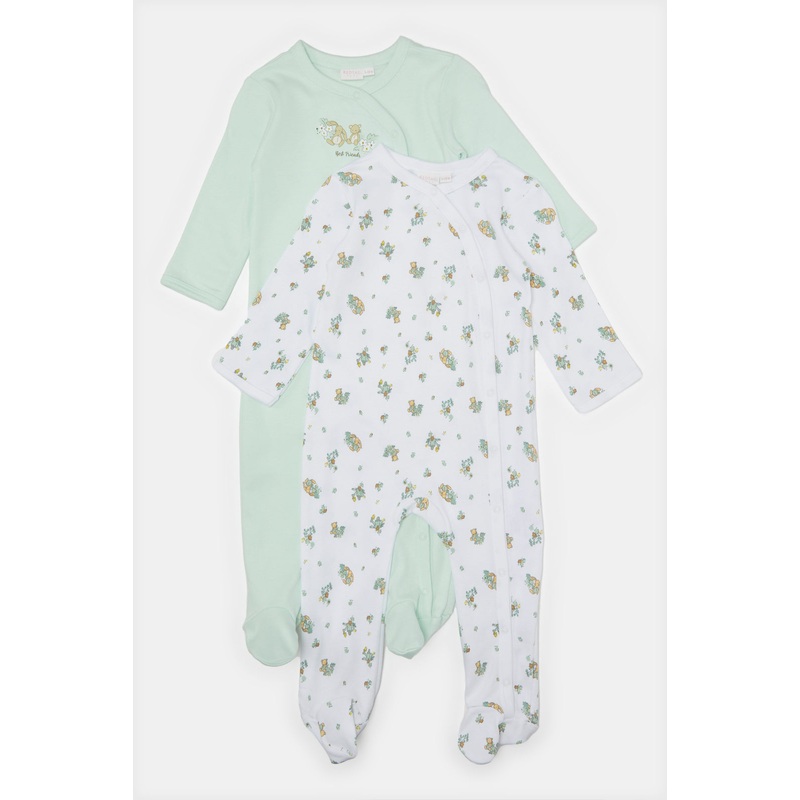 Get this sleepsuit set for your little ones. It features a round neckand long sleeves that will lead to a comfortable and cosy fit.Gender: Baby (0 to 12 Mths)Colour: Mint/WhitePattern:PrintedNeck:RoundNeckSleeve: Long SleeveSet Includes: 2x SleepsuitsCare