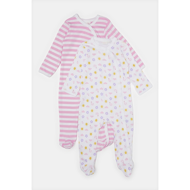 Get this sleepsuit set for your little ones. It features a round neckand long sleeves that will lead to a comfortable and cosy fit.Gender: Baby (0 to 12 Mths)Colour: Pink/WhitePattern: Striped/PrintedNeck:RoundNeckSleeve: Long SleeveSet Includes: 2x Sleeps