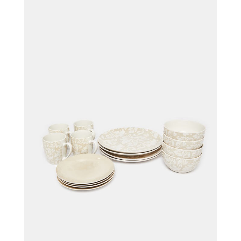 Add luxury to your table and serve food in the most appetizing way with this white porcelain dinner set. This set consists of 4 plates, 4 side plates, 4 soup plates and 4 mugs.Section: Home-DiningColour: BeigePattern: FloralSet Includes: 4x Dinner Plate 4x