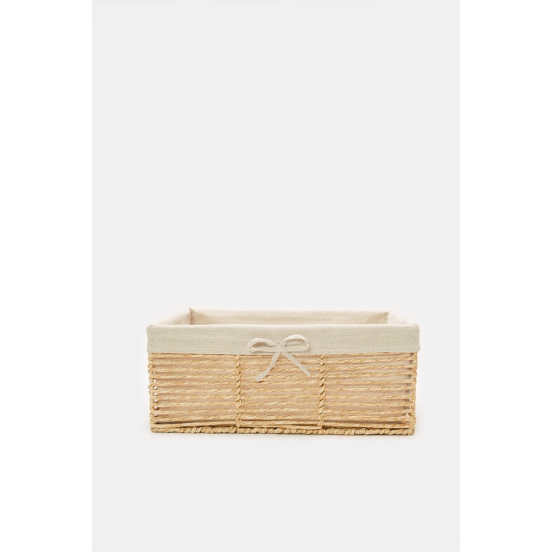 Beige Rectangle Storage Basket With Lining (Medium)