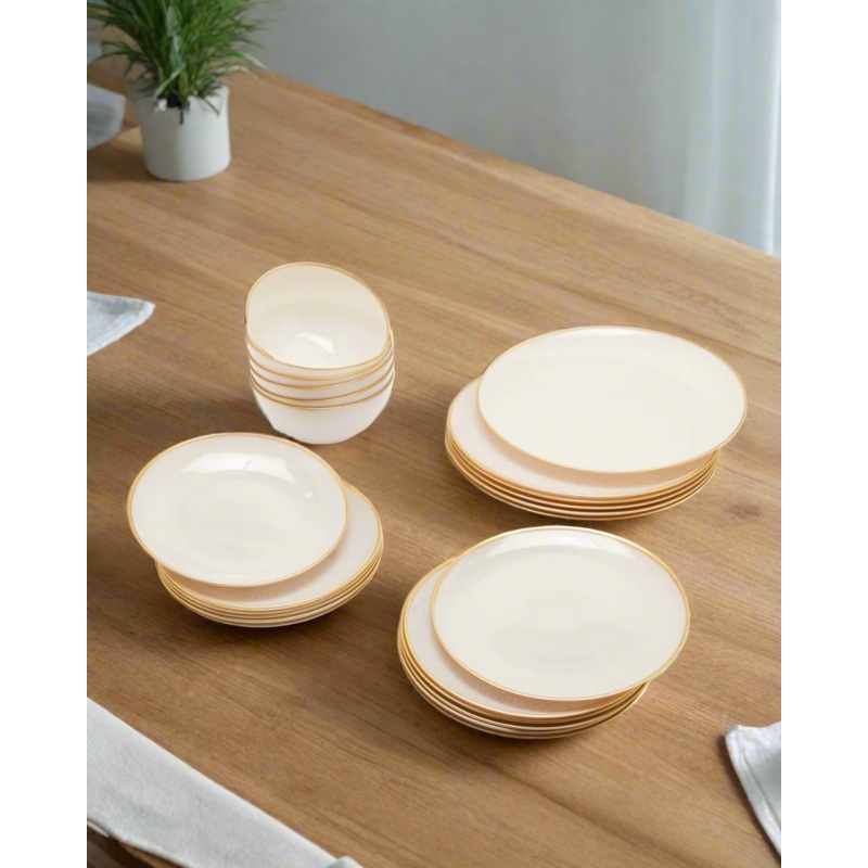 Enjoy every dish with our carefully designed dinner set, perfect for enhancing the warmth of your dining experience.Section: Home-DiningColour: BeigePattern: EmbellishedSize/Dimensions: 6 x Dinner Plate 6 x Dessert Plate 6 x Soup Plate 6 x Soup BowlMateria