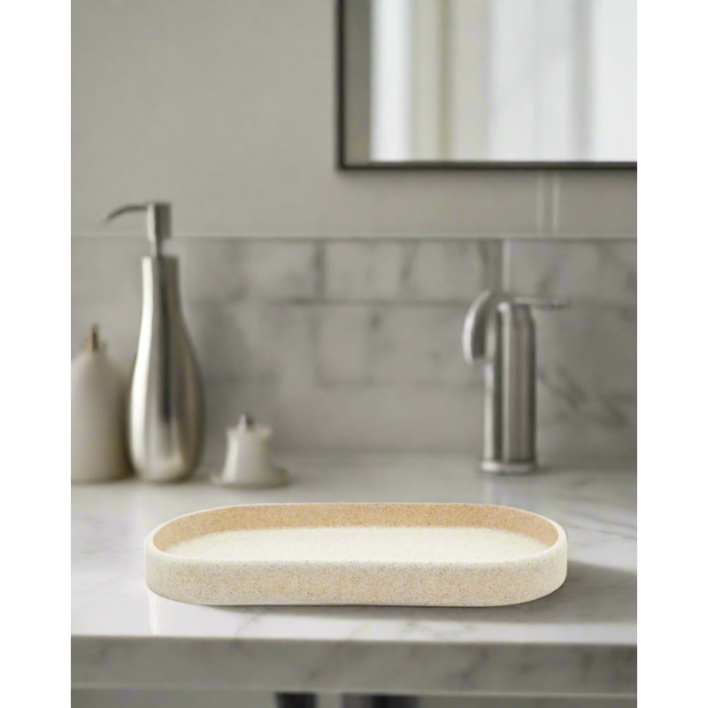Elegant and practical! This amenity tray is perfect for organizing toiletries and adding a touch of sophistication to your bathroom decor.Section: Home-BathroomColour: BeigePattern: EmbossedSize/Dimensions: Height 3cm x Width 31cm x Depth 16.5cmMaterial: P
