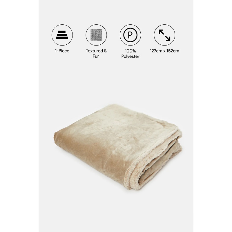 This throw is thoughtfully designed to drape beautifully over your bed, adding a touch of luxury and sophistication to your sleeping space.Section: Home-BedroomColour: BeigePattern: TexturedCare Instructions: Wipe CleanSize/Dimensions: 127cm x 152cmMateria