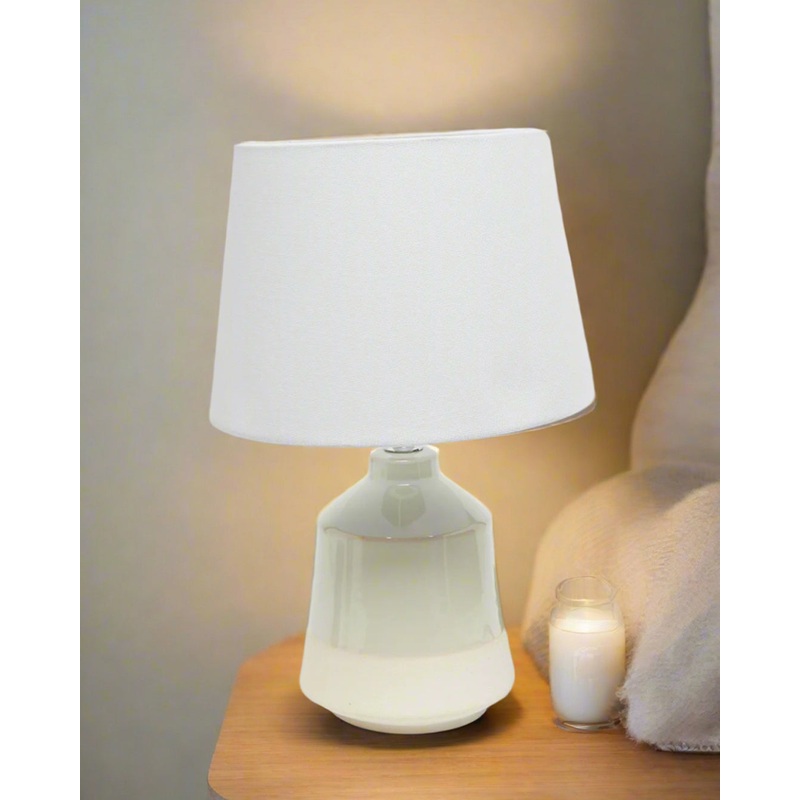 Brighten your room with this stylish table lamp, featuring a sophisticated glass base for a timeless look.Section: Home-DecorColour: BeigePattern: SolidSize/Dimensions: Height 34.5cm x Width 23cmMaterial: CeramicStyle No: 130854338