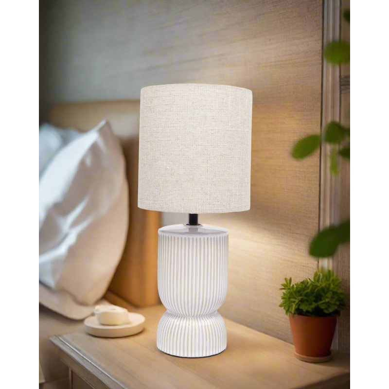 This table lamp offers a perfect balance of style and function. Designed to complement any space, it provides warm, ambient lighting ideal for reading, working, or relaxing.Section: Home-DecorColour: BeigePattern: TexturedSize/Dimensions: Height 39Cm X Len