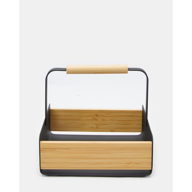 Designed with a sleek black iron frame and natural bamboo accents, this caddy blends modern aesthetics with practical organization. Perfect for storing kitchen essentials, office supplies, or bathroom necessities.Section: Home-DiningColour: BlackPattern: P