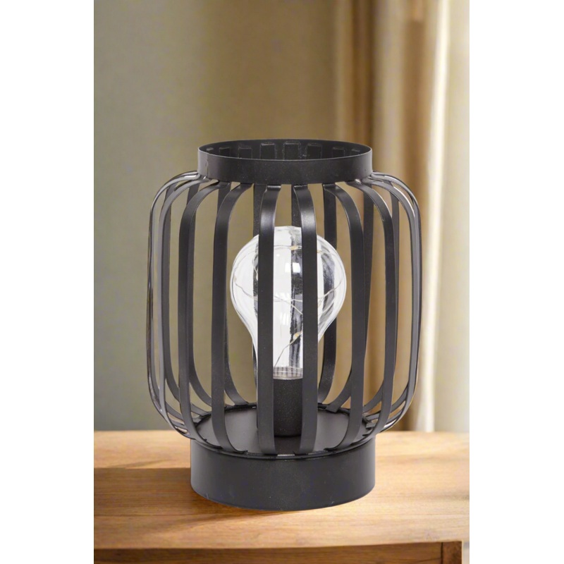 Illuminate your space with this elegant metal lantern lamp featuring an LED bulb. Perfect for adding a warm and cosy ambience to any room or outdoor setting.Section: Home-DecorColour: BlackPattern: PlainSize/Dimensions: Height 17cm x Diameter 13cmMaterial: