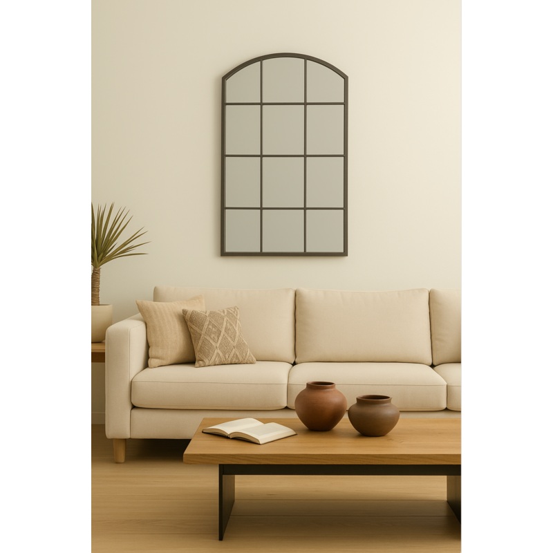Showcasing an attractive design with a unique touch, this wall mirror is designed to uplift the look of your home decor.Section: Home-DecorColour: BlackPattern: TexturedSize/Dimensions: Height 2.5cm x Width 50.8cm x Length 76cmMaterial:GlassStyle No: 13085
