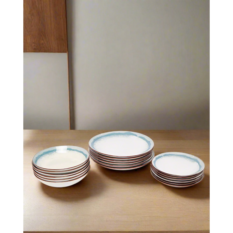 Add luxury to your table and serve food in the most appetizing way with this white porcelain dinner set. This set consists of 6 plates, 6 side plates and 6 soup plates.Section: Home-DiningColour: BluePattern: EmbellishedSet Includes: 6x Dinner Plate 6x Sid
