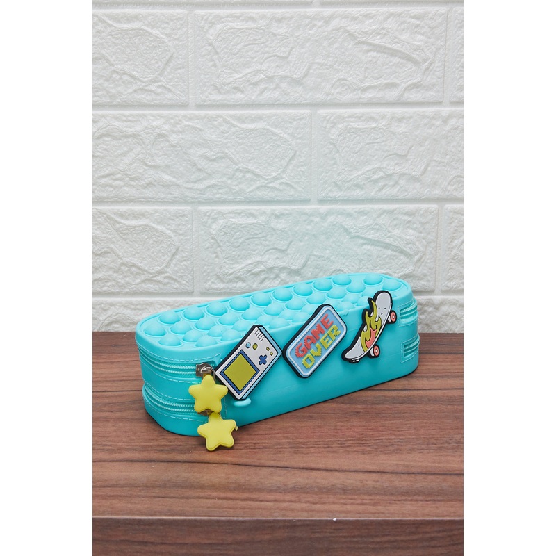Adorable skater-themed pencil case in vibrant blue colour. The case features a cute unicorn illustration, a mesh pocket, and shimmering wings. Perfect for storing pens, pencils, and other school supplies.Gender: Travel AccessoriesColour: BluePattern: Skate