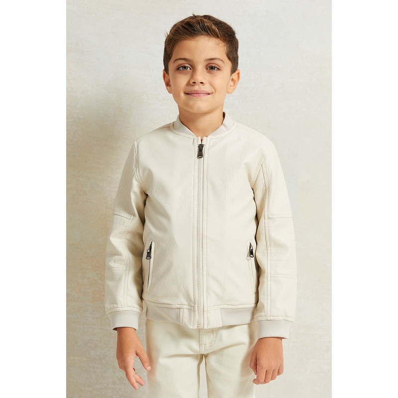 Winter is coming; style your son's outfit with this comfortable and stylish warm jacket for boys. Match it with different bottoms and sneakers for a simple, casual, and stylish look.Gender:Boys (2 to 8 Yrs)Colour: BeigePattern:EmbellishedNeck: Round NeckSl
