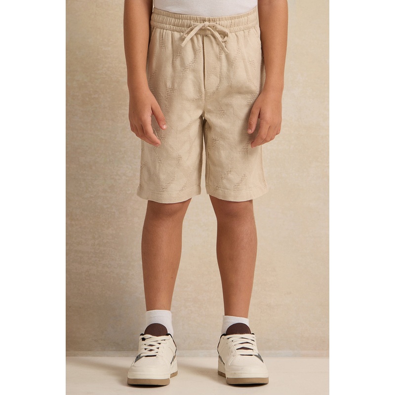 A pair of shorts in beige colour for boys features an elasticated waistband and side pockets for added functionality. It can be matched with a T-shirt and a pair of sneakers for a casual look.Gender: Boys (2 to 8 Yrs)Colour: BeigePattern: JacquardFit: Regu