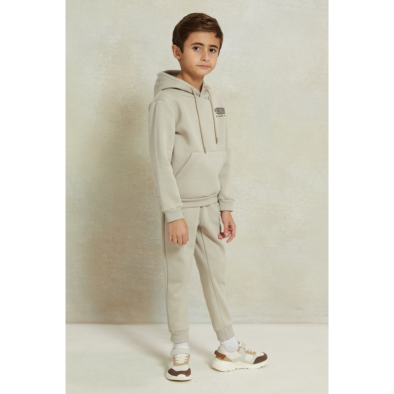 Boys Beige Printed Hooded Jogger Set (2 Piece)