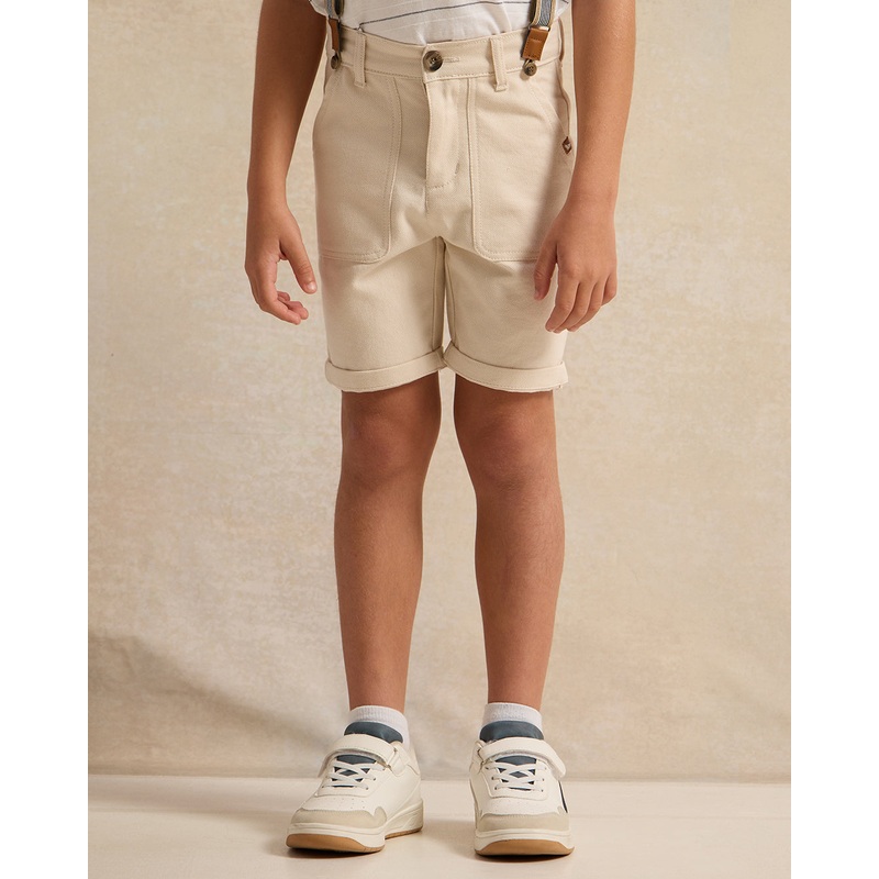 Trendy shorts for boys, offering a comfortable and adjustable fit. Ideal for casual outings and summer days.Gender: Boys (2 to 8 Yrs)Colour: BeigePattern: SolidModel Size: 5-6 YearsCare Instructions: Machine Wash ColdFabric: 100% CottonStyle No: 130922775