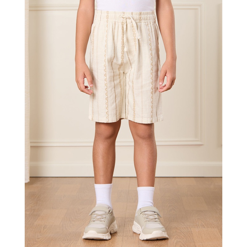 A pair of casual shorts for boys, perfect for warm-weather days. Made from soft, breathable fabric with a relaxed fit and adjustable waistband for all-day comfort and easy movement.Gender: Boys (2 to 8 Yrs)Colour: BeigePattern: StripedModel Wears: 5-6 YrsM