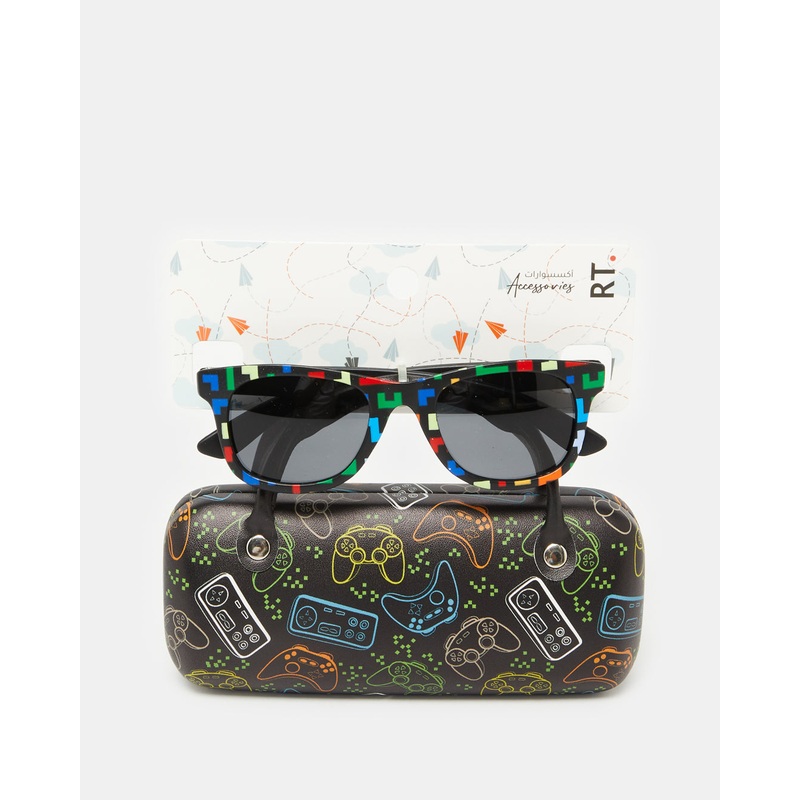 Stylish and fun sunglasses designed to protect little eyes while adding a cool touch to their outfit. Comes with a printed case for safe and easy storage.Gender: Boys AccessoriesColour: BlackPattern: PrintedShape: Wayfarer SunglassesSet Includes: 1x Sungla
