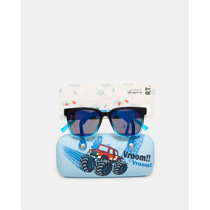 Boys Blue And Black Wayfarer Sunglasses With Printed Case