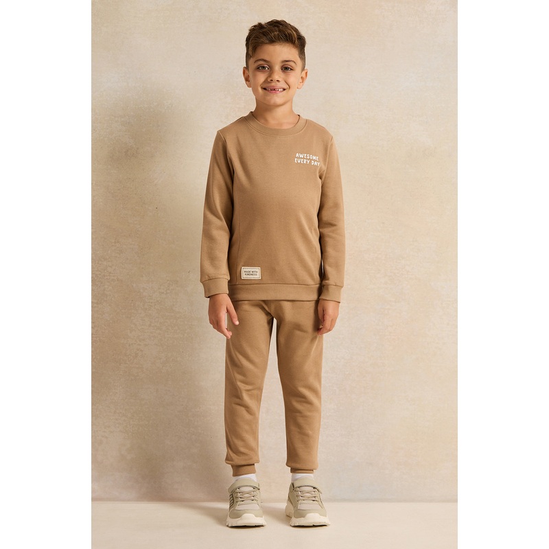 The classic crew neck design provides a relaxed fit, ensuring comfort during wear. The joggers often feature an elastic waistband and cuffed ankles, providing a secure fit and enhancing mobility.Gender: Boys (2 to 8 Yrs)Colour: BrownPattern: PrintedNeck: R