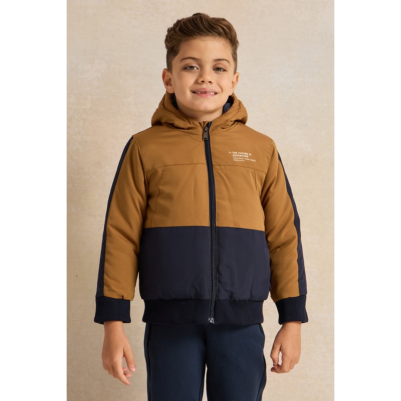 Style your boys' winter looks with this comfortable brown hoodedjacketwithpockets. Match it with all different types of bottoms for a complete look .Gender: Boys(2 to 8 Yrs)Colour: BrownPattern:EmbellishedNeck:HoodedSleeve: Long SleeveModel Wears: 5-6Model