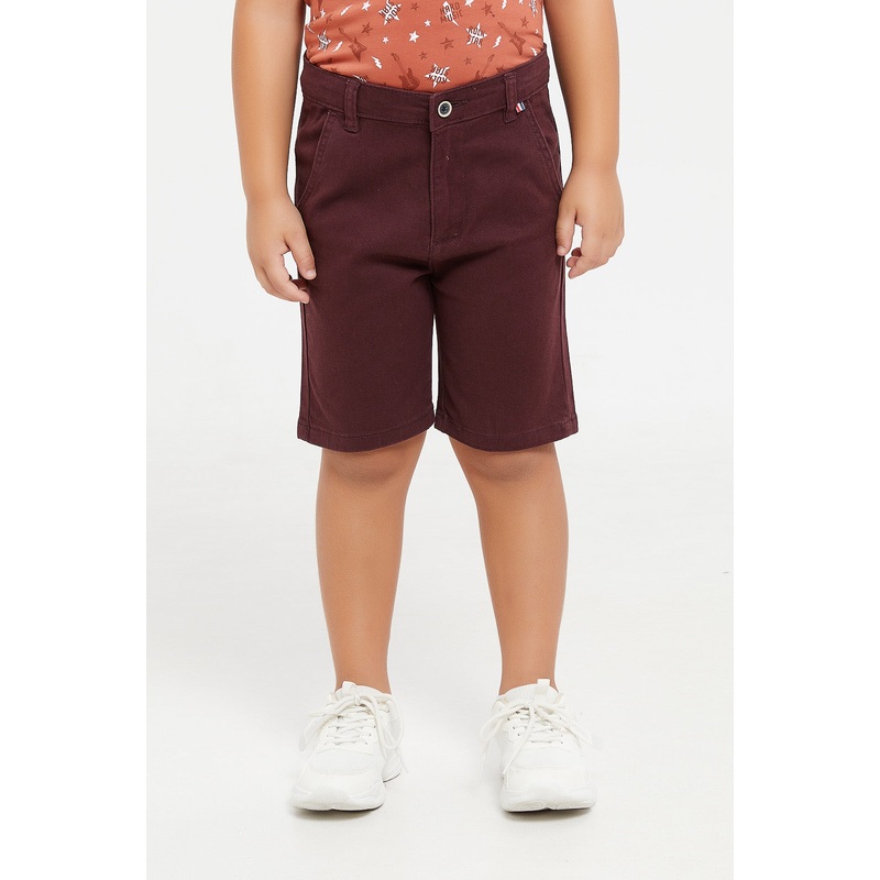 Casual and trendy, this pair of chino short will suit your little boy for everyday wear. Match this comfortable short with a t-shirt and a sneaker for a complete casual look.Gender: Boys (2 to 8 Yrs)Colour:BurgundyPattern: PlainFit: Regular FitLength: Regu
