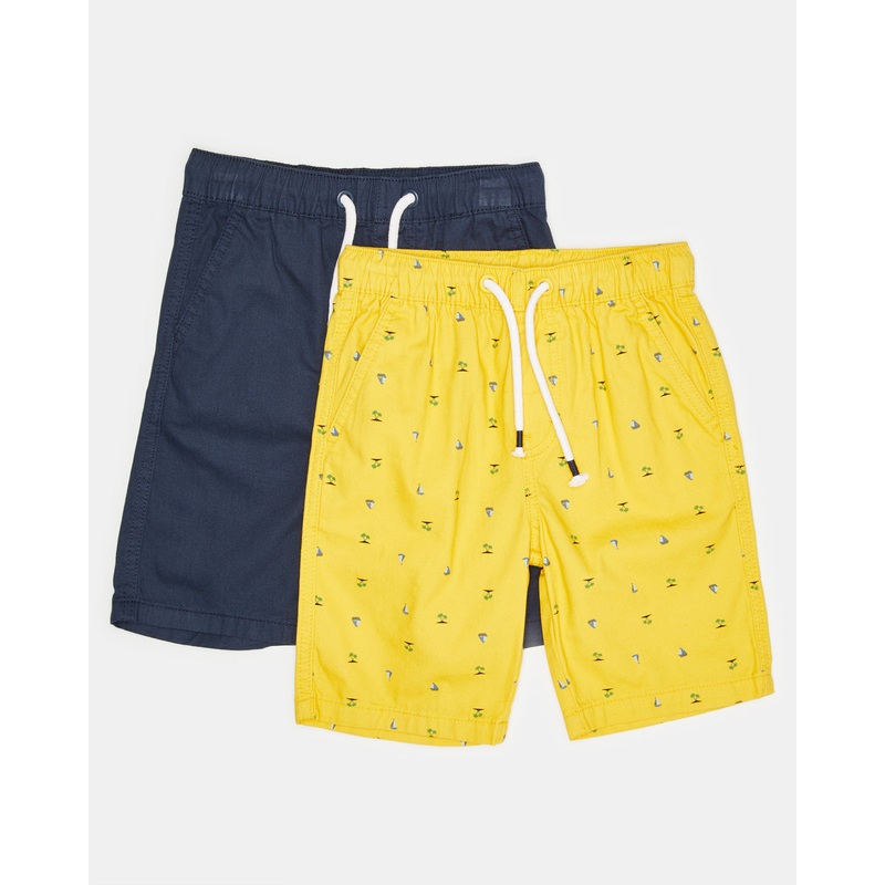 Boys Navy And Yellow Printed Shorts Set (Pack of 2)