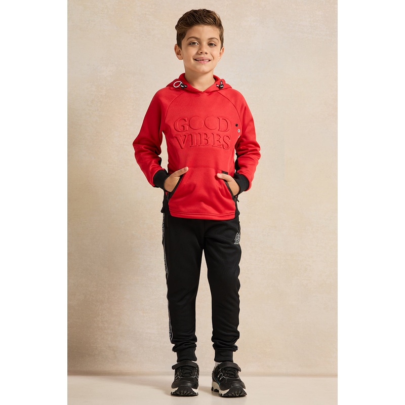 This set includes a comfortable hooded sweatshirt and matching jogger pants, making it an ideal choice for both lounging and outdoor play.Gender: Boys (2 to 8 Yrs)Colour: RedPattern: PrintedNeck: HoodedSleeve: Long SleeveModel Size: 5-6 YrsSet Includes: 1x