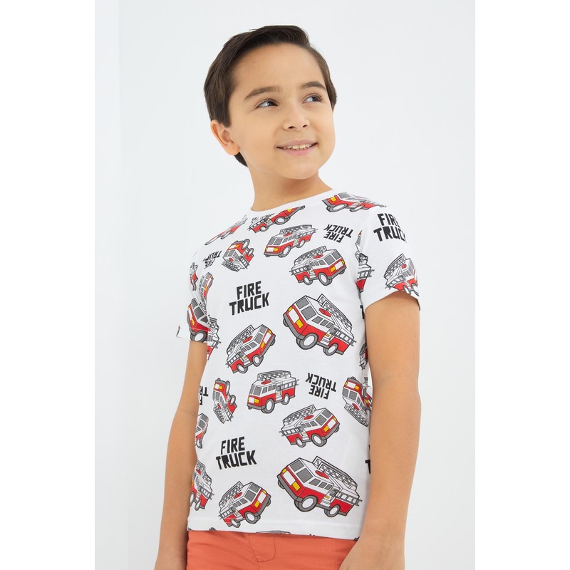 Add some trendychoicesto your son's t-shirt collection by getting thisprintedt-shirt.Match thiscomfortable piece withjoggers or shortsfor a completely casual look.Gender: Boys (2 to 8 Yrs)Colour: WhitePattern: Fire Truck PrintNeck: Round NeckSleeve: Short