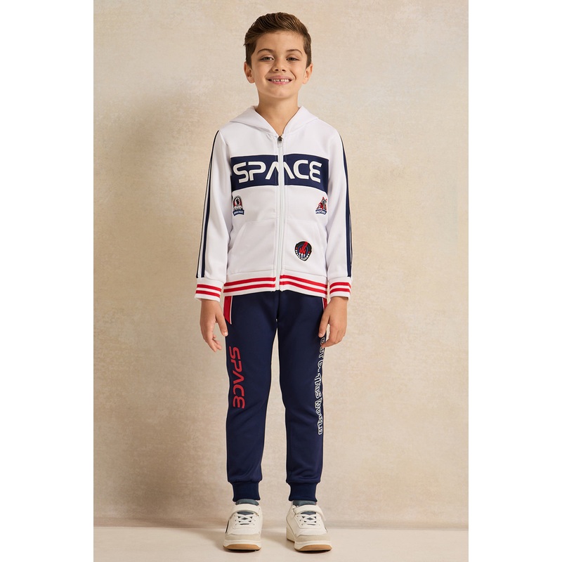 This set includes a comfortable hooded sweatshirt and matching jogger pants, making it an ideal choice for both lounging and outdoor play.Gender: Boys (2 to 8 Yrs)Colour: WhitePattern: PrintedNeck: HoodedSleeve: Long SleeveModel Size: 5-6 YrsSet Includes: