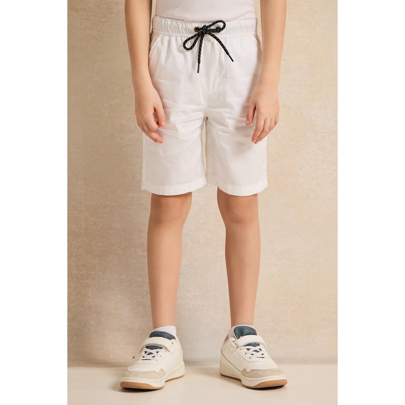A pair of shorts in White colour for boys, it features an elasticated waistband and side pockets for added functionality. It can be matched with a top and a pair of sneakers for a casual look.Gender: Boys (2 to 8 Yrs)Colour: WhitePattern:PlainFit: Regular