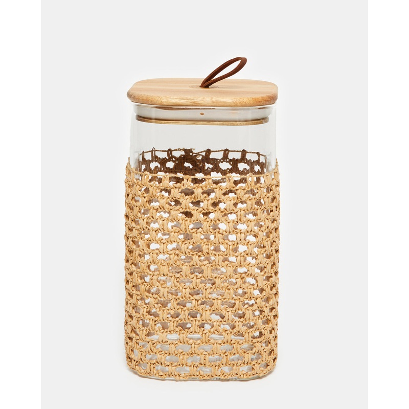 A borosilicate storage jar, offering durability and a sleek design to keep your essentials neatly stored.Section: Home-DiningColour: BrownPattern: EmbellishedSize/Dimensions: Capacity 1600mlMaterial: GlassStyle No: 131425308