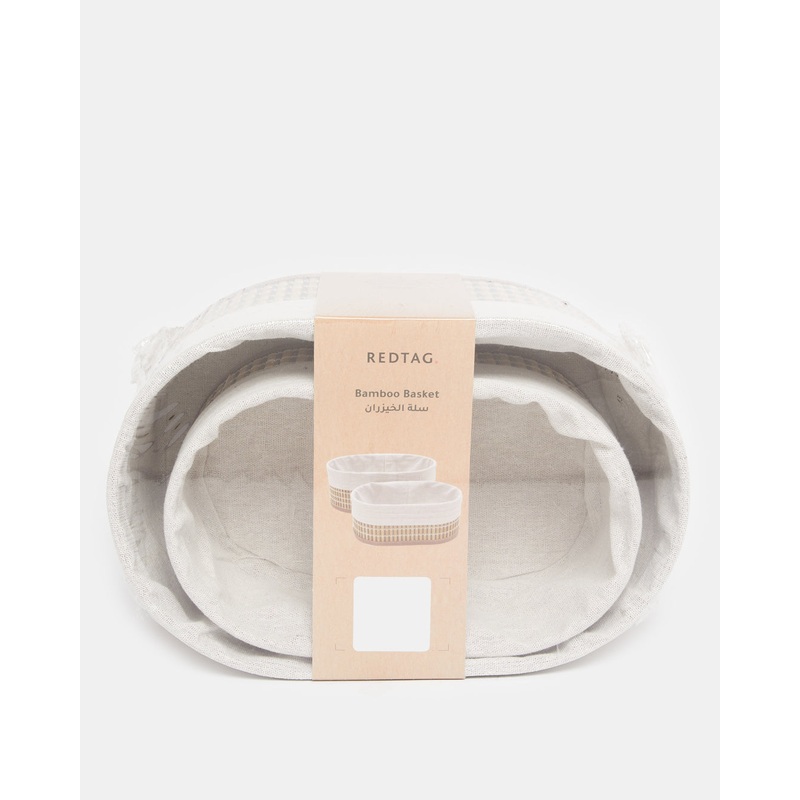 The set of two baskets features a sleek oval shape and a combination of natural bamboo and soft white fabric. The baskets are perfect for storing towels, toiletries, or other bathroom items, adding a touch of rustic charm to your space.Section: Home-Bathro
