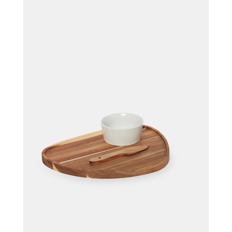 A 3-piece serving set including a ceramic bowl, wooden spoon, and matching tray. Ideal for condiments, snacks, or side dishes with a rustic, refined touch.Section: Home-DiningColour: WhitePattern: PlainSet Includes: 1x Bowl 1x Tray 1x SpoonMaterial:Ceramic