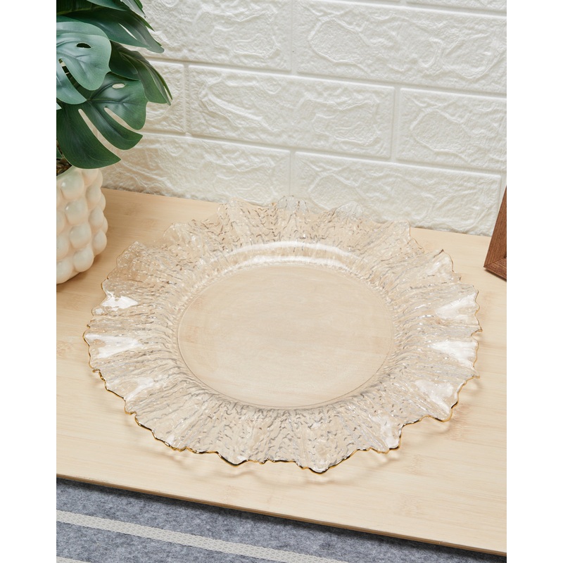 Add a touch of sophistication to your dining table with this elegant charger plate. Designed to complement your tableware, its perfect for enhancing formal dining settings.Section: Home-DiningColour: ClearPattern: EmbellishedSize/Dimensions: Diameter 33CmM