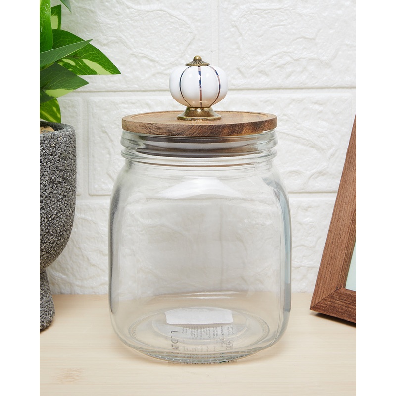• This storage jar is the perfect blend of simplicity and aesthetic vibes. You can use this canister to store and present your essentials in a neat way in your kitchen. It comes with a wooden lid to keep everything inside fresh.