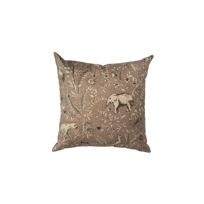 Introducing the Della Custom Pillow cover, featuring a simple whimsical pattern mixed with various animals and botanical motifs. All set against a soft and inviting neutral backdrop, this cover adds a touch of playfulness and natural beauty to your living space.