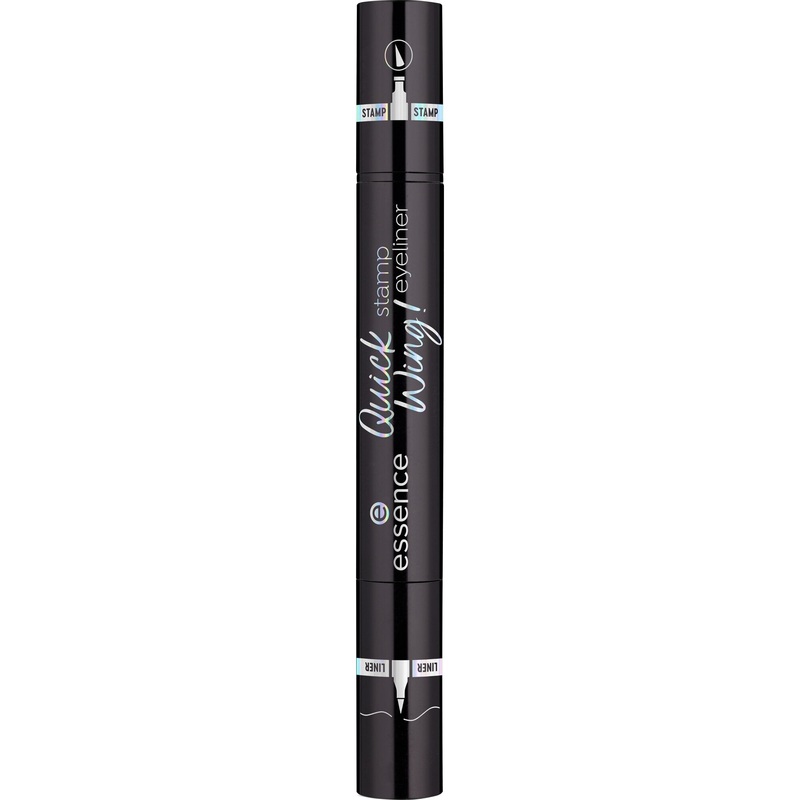 • Thanks to the essence Quick Wing! stamp eyeliner you can easily apply long-lasting symmetrical and sharp wings to your eye. With that, the eyeliner is perfectly suited for makeup beginners as well as experts. The stamp side creates flawless wings next to your eyes, while the precise felt tip of the eyeliner makes it easy to connect the wing with your eye and draw an eyeline on your entire lid.
