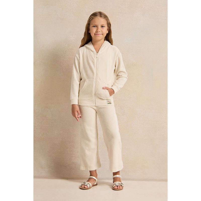 Girls Cream Ribbed Jogger Suit (2 Piece)