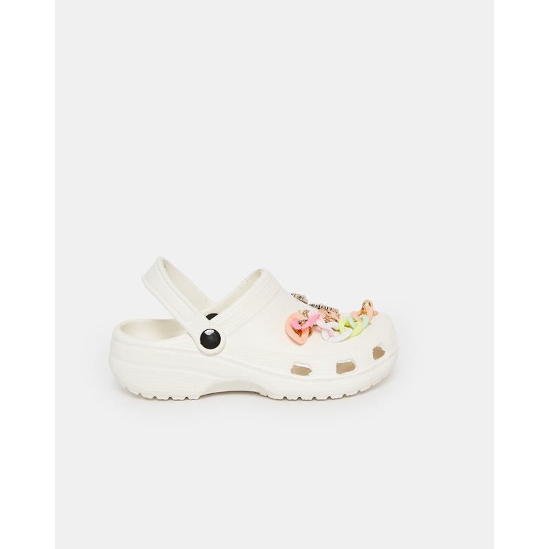 Easy, breezy, and funthese clogs are made for nonstop play. Lightweight, waterproof, and slip-on with a secure heel strap, theyre perfect for sunny days, beach outings, or just running around the house.Gender: Girls Footwear (3 to 5 Yrs)Colour: WhitePatter