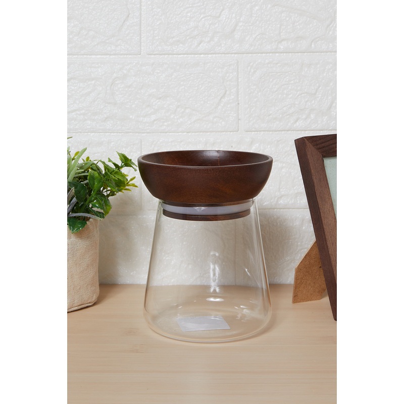 Keep your kitchen organized with our glass canister, featuring a sleek wooden cover for an elegant and airtight seal.Section: Home-DiningColour: Brown/ClearPattern: PlainSize: Glass Capacity: 700mlCare Instructions: Easy WashMaterial: Glass, WoodStyle No: