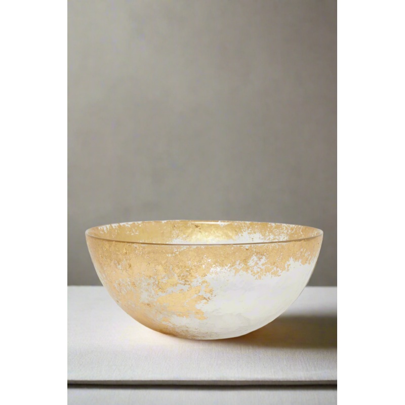 A stylish glass bowl, perfect for presenting fresh salads or fruits with a modern touch.Section: Home-DiningColour: GoldPattern: TexturedSize/Dimensions: Diameter 25CmMaterial: GlassStyle No: 130792430