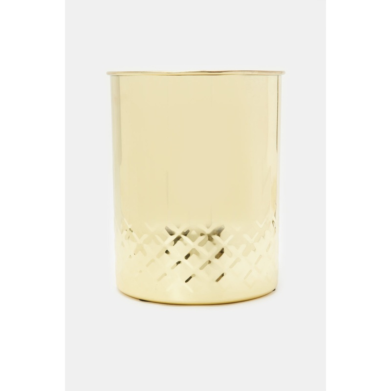 Keep your space tidy with our embossed metal waste bin, offering durability and a touch of elegance to any room.Section: Home-BathroomColour: GoldPattern: EmbossedSize: Height 25Cm X Width 20Cmx Depth 20CmMaterial: SteelStyle No: 130660277