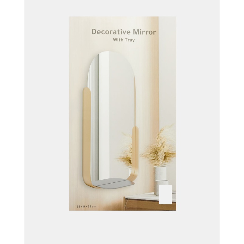 Elevate your space with this decorative mirror with tray, combining sleek design and smart function. The elegant gold frame and curved lines add a modern touch, while the built-in tray is perfect for holding small essentials. Ideal for entryways, bedrooms, or dressing areas where style meets practicality.