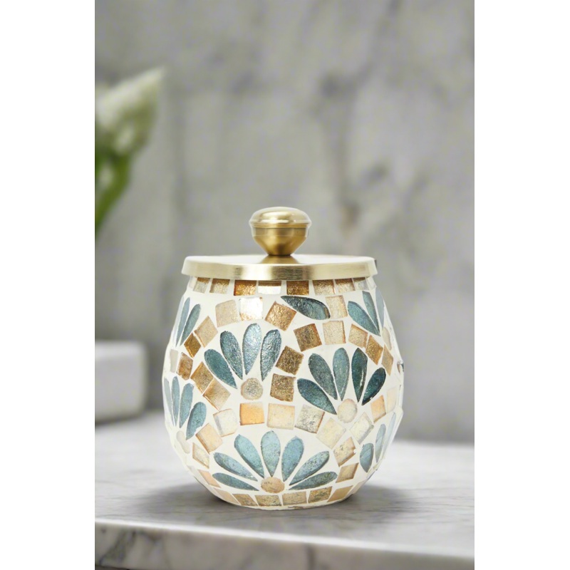 The wide-mouthed design allows for easy access to your cotton supplies, while the lid keeps them clean and protected from dust and moisture. Its simple design matches any decor.Section: Home-BathroomColour: GoldPattern: PatternedSize/Dimensions: Height 13C
