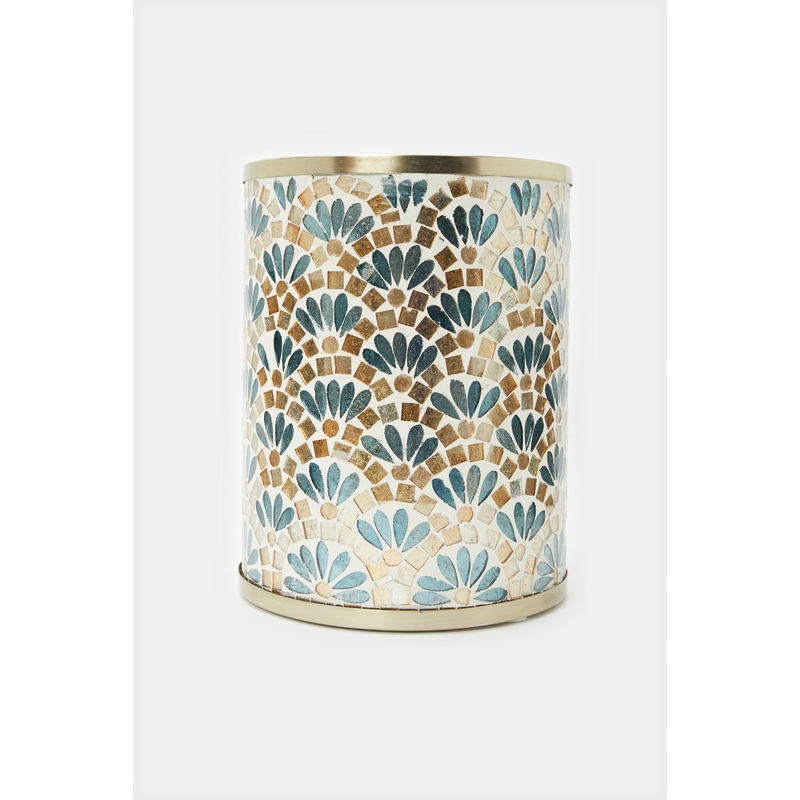 The Gold Mosaic Waste Bin is a stylish and functional addition to any home or office space. Featuring a striking cylindrical design, this waste bin is adorned with a beautiful gold mosaic pattern that adds a touch of elegance to your decor.Section: Home-Ba